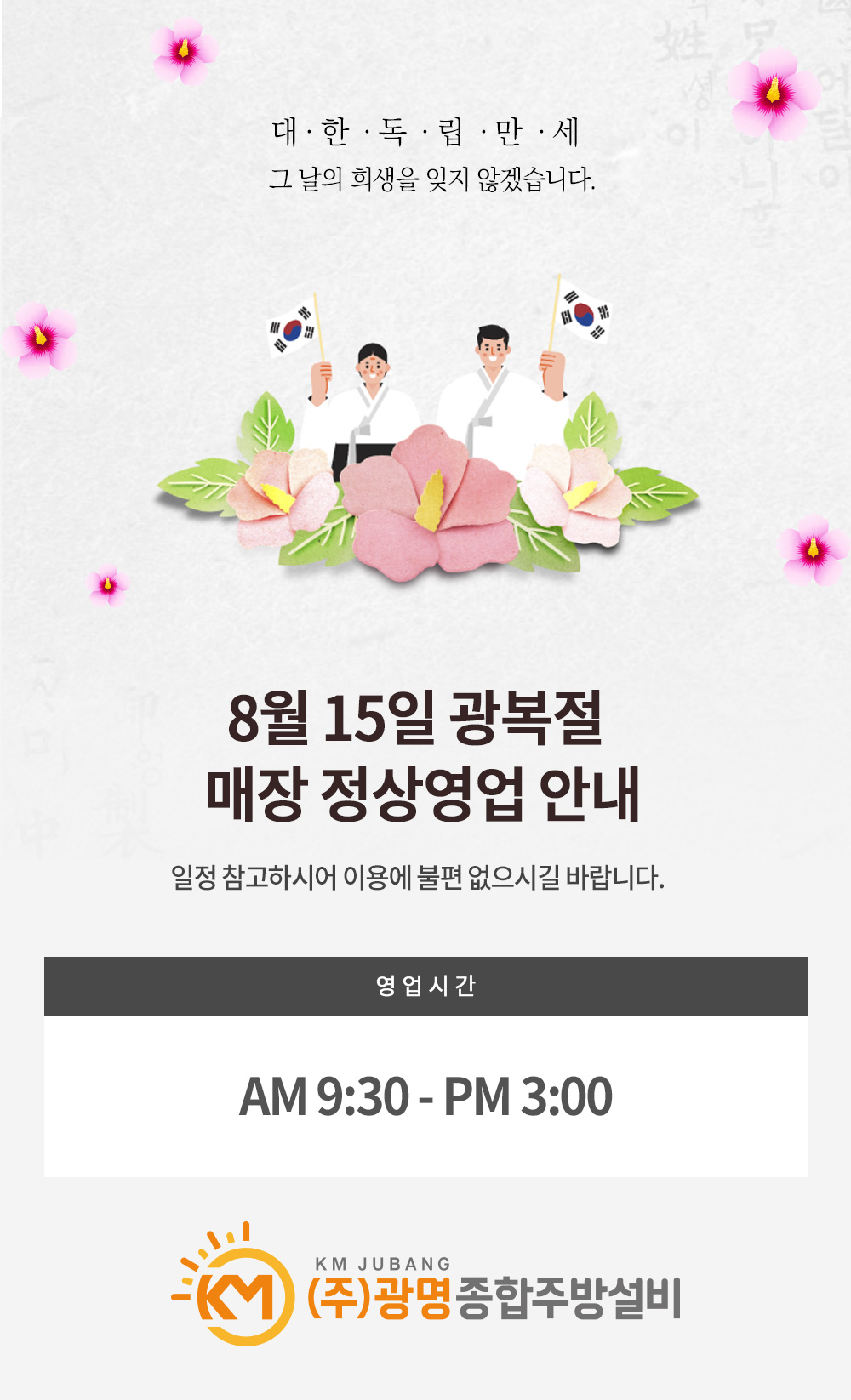 2024년 8월 15일 광복절 매장 정상영업 안내